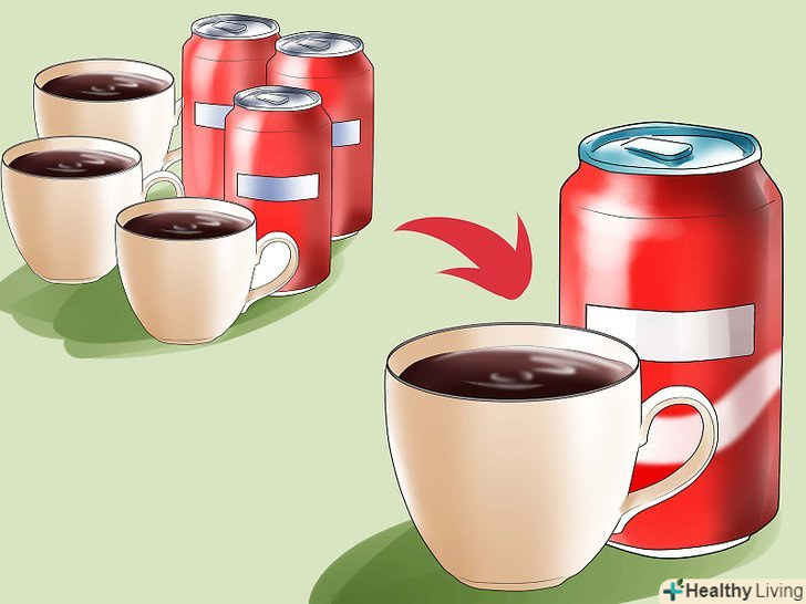 Скоротіть споживання кави і газованих напоїв.кава має високу кислотність і тому може посилювати симптоми виразки. Безалкогольні газовані напої (наприклад, «Кока-Кола») також можуть дратувати слизову оболонку шлунка і погіршувати стан. Якщо у вас виразка шлунка, спробуйте на деякий час відмовитися від ранкової чашки кави.- Хоча сам по собі кофеїн не посилює виразку, це роблять кислотні безалкогольні напої, міцний чай і кава. При виразці шлунка постарайтеся перейти на більш м'які трав'яні чаї. Якщо вам потрібен кофеїн, спробуйте додавати в чай трохи Гуарани.[15]