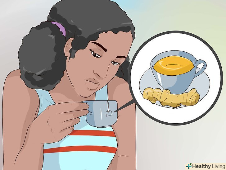Випийте чашечку імбирного чаю.імбир вже протягом довгого часу вважається хорошим засобом від нудоти, іноді його навіть асоціюють з хіміотерапією і хірургічним втручанням. До того ж, імбирний чай цілком безпечний для вагітних жінок, але краще проконсультуватися з гінекологом і пити 1-2 чашки в день! В основному, дорослі можуть пити 4-6 чашок імбирного чаю в день.- Щоб заварити імбирний чай зі свіжого імбиру, очистіть і наріжте приблизно ½ - 1 чайну ложку імбиру. Залийте імбир киплячою водою і додайте лимон і / або мед за смаком.