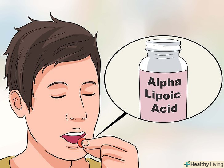 Приймайте харчові добавки з антиоксидантами.і хоча є безліч способів отримати антиоксиданти з їжі, харчові добавки з антиоксидантами можуть бути дуже корисні. Альфа-ліпоєва кислота — АЛК)-це антиоксидант, дія якого вивчалася на хворих на діабет, серцево-судинними захворюваннями та хворобами печінки. Він підтримує метаболізм цукру в печінці і перешкоджає розвитку алкогольного гепатозу. Найбільш поширене дозування цього антиоксиданту становить 100 мг три рази на день.[28][29] N-ацетилцистеїн (N-АЦ) працює в якості попередника глутатіону, що є головним антиоксидантом в нашому організмі. Найпоширеніша дозування для підтримки здоров'я печінки становить 200-250 мг двічі на день.- АЛК може взаємодіяти з ліками для лікування діабету, тому рекомендуємо проконсультуватися з лікарем щодо дозування препарату.