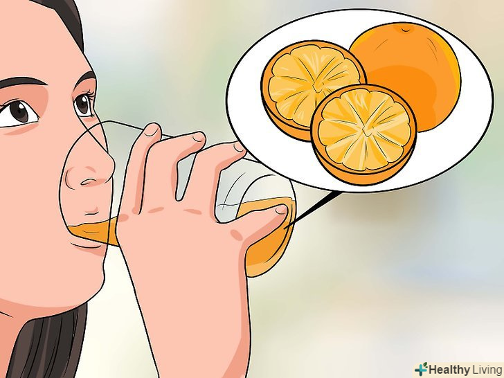 Пийте цитрусові соки, багаті вітаміном C. Вітамін C допомагає у відновленні тканин і загоєнні ран. Пийте цитрусові соки або їжте цитруси — це допоможе печінці відновитися і дозволить знизити рівень печінкових ферментів до нормального. Крім того цитруси знижують ризик розвитку раку печінки.[18] додайте в свій раціон харчування апельсини, грейпфрути, лимони і Лайми. Купуючи соки, намагайтеся вибирати ті, які збагачені вітаміном C.