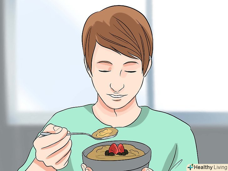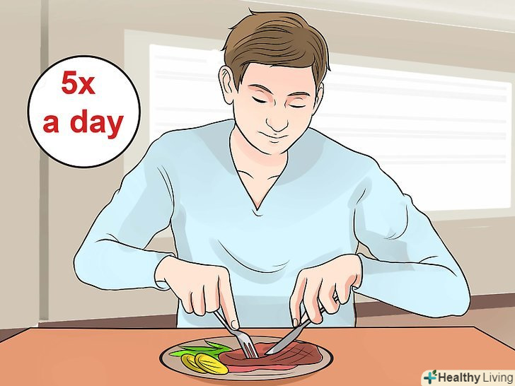 Їжте менші порції, але частіше.таким чином ви не будете перевантажувати свій шлунок більшою кількістю їжі, ніж він може нормально переварити за один раз. Це запобіжить також розтягування шлунка, яке часто викликає неприємні відчуття.[10]- Спробуйте їсти не три, а п'ять-шість разів на день. Для цього доповніть основні прийоми їжі невеликими проміжними перекусами.