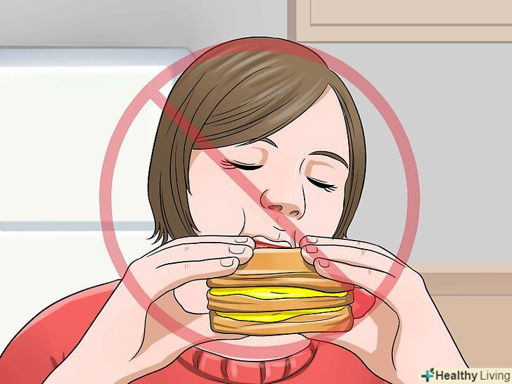 Намагайтеся не ковтати повітря.часто люди ковтають повітря, навіть не помічаючи цього. До найпоширеніших ситуацій належать такі:[22]- Занадто швидке поглинання їжі. Кращий спосіб уникнути ковтання повітря під час їжі полягає в тому, щоб їсти не поспішаючи, ретельно пережовуючи їжу. Крім того, це дасть вам можливість повною мірою насолодитися їжею.
