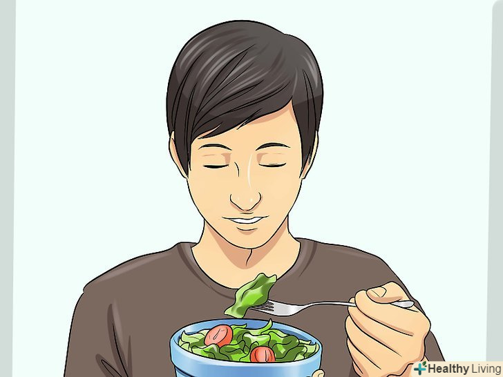 Зміцнюйте своє здоров'я фізичними вправами.Заняття спортом сприятливо позначаються як на фізичному, так і психічному здоров'ї. З їх допомогою ви зможете зміцнити своє тіло, зберегти оптимальну вагу, прискорити обмін речовин і поліпшити травлення.[18]- Вправи з аеробіки прискорюють серцевий пульс і сприяють просуванню їжі по травному тракту. Добре підійдуть біг підтюпцем, швидка ходьба, плавання, а також заняття різними видами спорту.