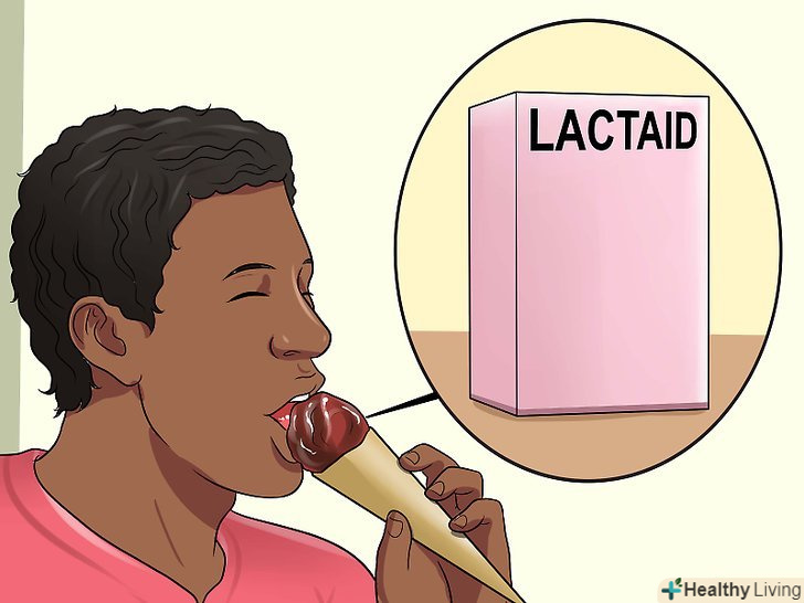 Якщо ви підозрюєте, що ваш організм погано засвоює лактозу, допомагайте йому перетравлювати її.навіть якщо у вас непереносимість лактози, вам не обов'язково повністю відмовлятися від морозива та інших молочних продуктів. Просто разом з молочними продуктами приймайте харчові добавки, що містять фермент лактазу.[2]- Поширеними препаратами є Лактаїд і Лактраза.