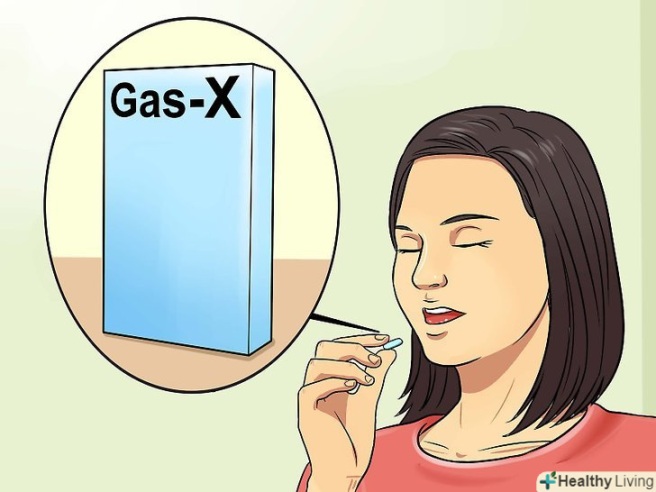 Спробуйте позбутися від газів за допомогою симетикону.цей засіб користується великою популярністю, хоча наукові дослідження не підтвердили його ефективність в боротьбі з газами. Проте, симетикон входить до складу наступних широко поширених препаратів:[3]- Гелусил