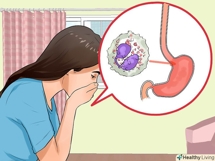 Придивіться до ознак еозинофільного (або алергічного) езофагіту.при цій формі езофагіту в стравоході і шлунку скупчуються білі кров'яні тільця (еозинофіли). Вони виробляють білок, який викликає запалення в горлі і може привести до звуження отвору стравоходу через утворення в ньому рубцевої і зайвої фіброзної тканини.[3][4]- Алергічна реакція може також викликати біль у животі, нудоту та / або блювоту.[5]