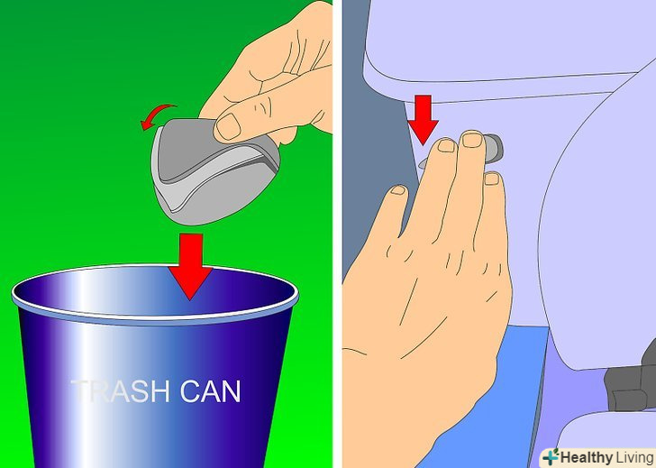 Переверніть вміст "капелюха" в туалет.змийте кал і викиньте "капелюх" і будь-який інший сміття в мішок для сміття. Зв'яжіть мішок для сміття в вузол і поклав його так, щоб не відчувався запах.