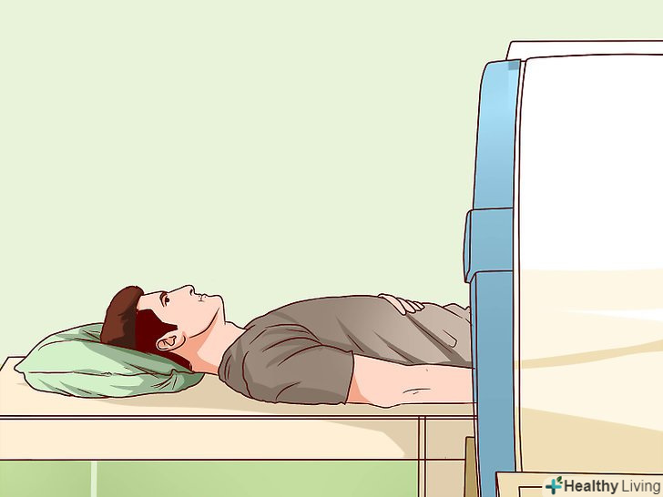 Запишіться на комп'ютерну томографію (КТ).якщо Вашому лікарю знадобляться додаткові знімки або ультразвукове дослідження не дало однозначних результатів, може знадобитися КТ. Цей метод дозволяє за допомогою рентгенівського випромінювання отримати зображення жовчного міхура в розрізі, які потім інтерпретуються комп'ютером.[27]- Вас попросять лягти в циліндричний апарат, який буде сканувати ваше тіло приблизно 30 хвилин. Це досить швидка і безболісна процедура.