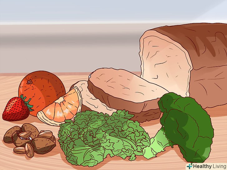 Скидайте вагу повільно.якщо ви хочете схуднути, не вдавайтеся до екстремальних дієт. Намагайтеся їсти здорову добре збалансовану їжу і включіть в свій раціон достатню кількість овочів і фруктів, складних вуглеводів (таких як хліб і макарони з цільної пшениці, коричневий рис) і білкових продуктів. Слід скидати не більше 0,5-1 кілограма в тиждень.[35]- Поступове і плавне схуднення знижує ризик утворення жовчних каменів.
