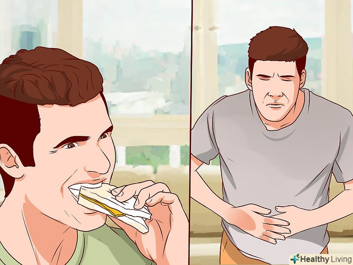 Зверніть увагу на своє самопочуття після рясної або жирної їжі.придивіться, чи відчуваєте ви біль в животі і/або жовчні кольки після того, як з'їдаєте велике або жирне блюдо, наприклад поснідавши яєчнею з беконом і ковбасою або переївши під час свят. У такі моменти біль і / або жовчні кольки найбільш вірогідні.- Деякі пацієнти відчувають слабкі жовчні коліки без ознак інфекції, при яких їм не потрібна медична допомога.