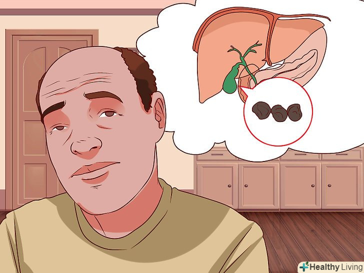 Врахуйте, що часто жовчнокам'яна хвороба не супроводжується будь-якими симптомами.камені в жовчному міхурі можуть залишатися протягом десятиліть і при цьому не викликати хворобливих відчуттів. У більшості людей жовчні камені не викликають ніяких симптомів. Фактично, жовчнокам'яна хвороба супроводжується симптомами лише у 5-10 % пацієнтів. Це ускладнює виявлення жовчних каменів, і для постановки правильного діагнозу слід звернутися до гастроентеролога.[3]- Будь-які симптоми виникають у менш ніж половини хворих на жовчнокам'яну хворобу.