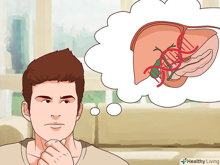 Врахуйте генетичні маркери.до груп підвищеного ризику відносяться жителі Північної Європи і Латинської Америки. Жовчні камені дуже часто утворюються у представників деяких корінних народів Америки, особливо племен на території Перу і Чилі.[14][15]- Грає роль і сімейний анамнез. Ризик жовчнокам'яної хвороби підвищений, якщо вона вже зустрічалася у вашій родині. Проте результати досліджень поки що не дозволили прийти до однозначної думки щодо даного фактора ризику.[16]