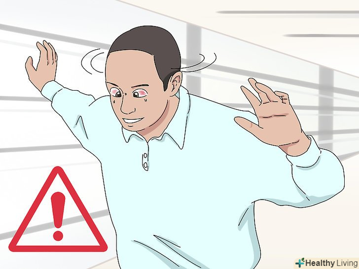 Слідкуйте за ознаками запаморочення.той, хто нещодавно вживав марихуану, може відчувати запаморочення або відчувати проблеми з координацією. Якщо людина багато спотикається, здається незвично незграбним або скаржиться на запаморочення, це можуть бути ознаки вживання марихуани.[4]