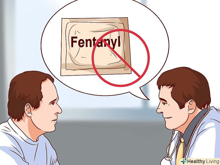 Трансдермальні фентанілові пластирі, такі як Дюрогезік і Фендівія, є сильним знеболюючим засобом, який може впоратися навіть з сильним болем. Однак у цього засобу є і небезпечна сторона-воно може викликати у людини сильну залежність. Фентанілові пластирі призначають пацієнтам, які відчувають сильний хронічний біль, в тому числі біль при хронічних артрозах і фантомні болі після ампутації кінцівок. Цей лікарський засіб зазвичай застосовують, якщо людина якийсь час використовував інші опіоїдні знеболюючі засоби, і у нього розвинулася толерантність до цих препаратів.[1] побічні ефекти фентанілу включають в себе безпричинне відчуття тривоги, дезорієнтацію, запаморочення і біль в області живота.[2] якщо ви якийсь час застосовували фентанілові пластирі, але необхідність в них минула, або вам потрібно продовжувати приймати сильні знеболюючі, проте ви хочете відмовитися від фентанілу, обговоріть ситуацію з лікарем. Він професійно оцінить ваш стан і складе план поступового зниження щоденної дози фентанілу або заміни його на інший лікарський засіб. Якщо у вас розвинулася залежність від фентанілу (тільки від фентанілу або від комбінації різних наркотичних засобів), зверніться за допомогою до Вашого лікаря або пройдіть обстеження і лікування в реабілітаційному центрі.