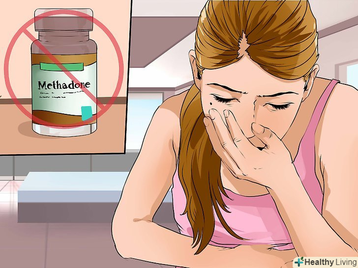 Не приймайте метадон, якщо є фактори ризику.Метадон не можна приймати, якщо у вас алергія на цей препарат. Його також не можна приймати при астмі або серйозних труднощах з диханням, при порушенні серцевого ритму, при серцево-судинних захворюваннях або при кишковій непрохідності.[10] всі перераховані захворювання підвищують ризик побічних ефектів від прийому метадону.- Ви повинні повідомити лікаря про всі свої захворювання і про препарати, які ви вживаєте, щоб лікар був упевнений в безпеці використання метадону в вашому випадку.
