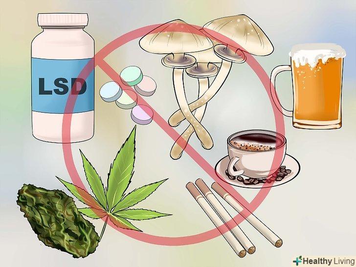 Скоротіть періодичність або перестаньте вживати безрецептурні препарати.обміркуйте вплив таких речовин на ваше сприйняття. Будь-які зміни сприйняття напевно збережуться або стануть більш помітними в разі прийому препаратів.[17] це особливо критично при вживанні галюциногенних речовин на зразок ЛСД, марихуани, галюциногенних грибів, екстазі або мескаліну.- Також іноді корисно відмовитися або обмежити вживання кофеїну, алкоголю і тютюнових виробів до тих пір, поки не дізнаєтеся реакції свого організму на кожну окрему речовину.