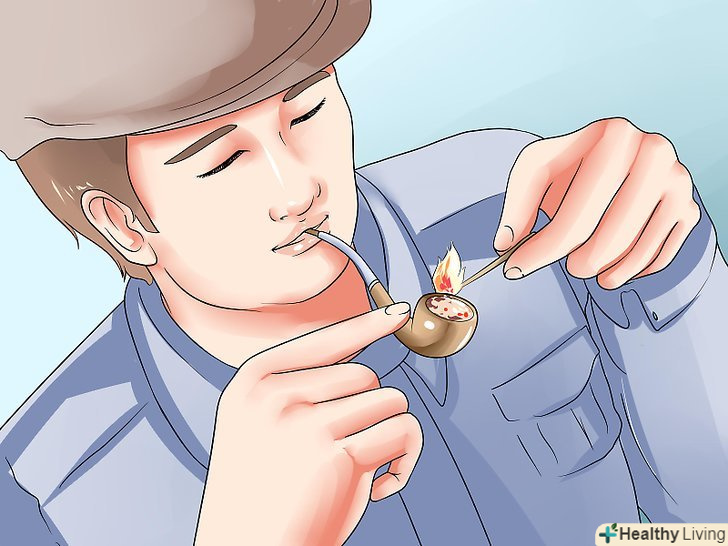 Підпаліть тютюн і обережно затягніться.після того, як ви забили трубку, все готово, ви можете закурювати. Щоб трубка не перегрілася або, щоб тютюн не розсипався ритмічно, обережно підкурюйте.