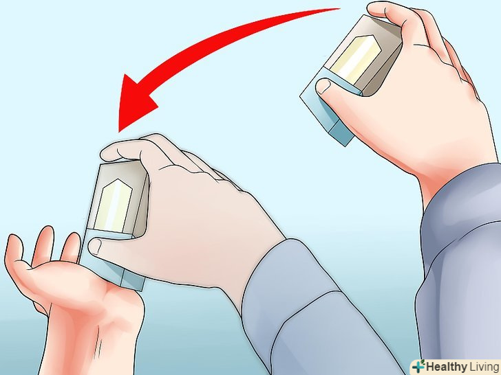 Візьміть пачку в руки і поверніть верхи вниз.верх пачки візьміть вашої сильною рукою і затисніть між великим і середнім пальцями, розгорніть пачку верхом до підлоги. Щоб пачка не вислизнула, зверху тримайте її вказівним пальцем. Другу руку підніміть вгору і розкрийте долоню, тримайте її так, щоб вона дивилася вгору.- З самого початку, вам не потрібно знімати поліетиленову обгортку з пачки і буде краще, якщо ви не будете її знімати. Так, ви не будете переживати, що пачка розкриється, поки ви будете утрамбовувати.