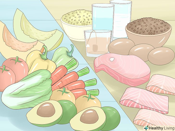 - Їжте здорові жири: омега-3 жирні кислоти, мононенасичені жири. Нездорові жири (транс-жири, мононасичені жири) їсти не варто.[10]