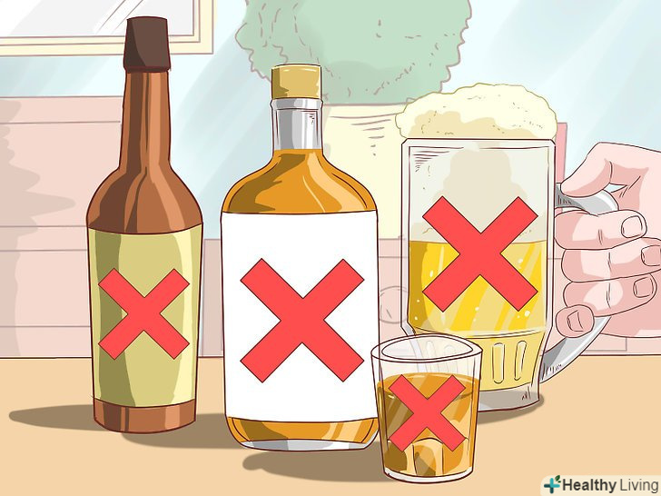 Не вживайте спиртне.поки організм очищається від кокаїну, вам варто утриматися від спиртного. Вживання алкоголю під час детоксифікації здатне уповільнити виведення кокаїну так само, як і при одночасному його вживанні з наркотиком.[11]