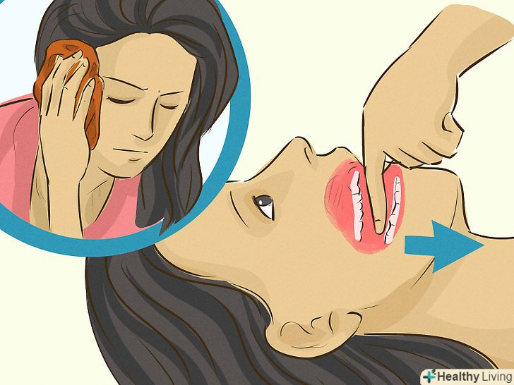 Розтягніть скроневі м'язи.злегка розігрійте обидві скроневі м'язи, перш ніж розтягувати їх: прикладіть до обох сторін голови вище вух теплі компреси, нагріту до невисокої температури грілку або теплу вологу тканину. Як тільки м'язи розслабляться, ляжте на спину і направте погляд в стелю. Просуньте вказівний палець будь-якої руки в рот, натисніть на щелепу відразу за нижніми зубами і потягніть її вниз.[30]