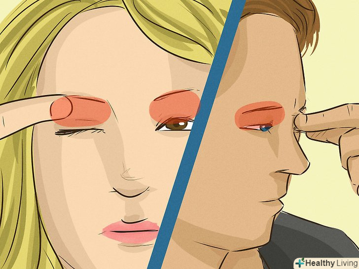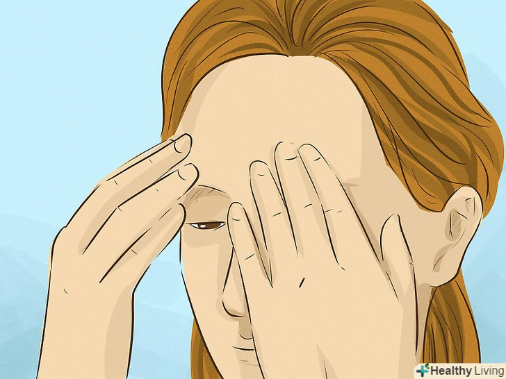 Помасажуйте кругові м'язи очей.є два способи докласти тиск до цих м'язів. Один з них полягає в тому, щоб просто натиснути вказівним пальцем на область над оком і під бровою, на край очниці. Можливо, неприємні відчуття підкажуть вам, що Ви знайшли правильне місце. Інший спосіб полягає в тому, щоб здавити цю область між пальцями.[33]