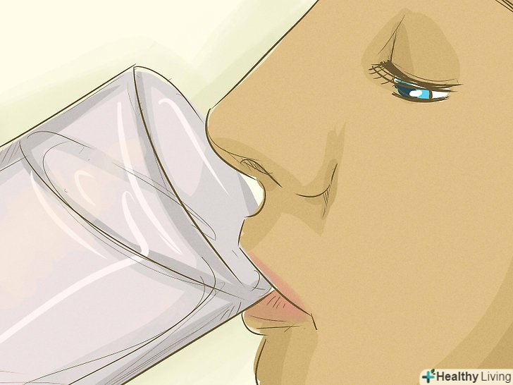 Підтримуйте водний баланс організму.швидше за все, лікар, медсестра, дієтолог або масажист радили вам пити більше води в той чи інший період вашого життя. Як правило, доросла людина повинна випивати 8 склянок (2 літри) води в день. Потрібно ще більше води в тому випадку, якщо ви займаєтеся спортом або стоїть спекотна погода і ви багато потієте.[16]- Може бути досить непросто пити рекомендовану кількість води, особливо якщо ви постійно зайняті і не сидите на місці. Якщо у вас виникли проблеми з цим, постійно тримайте при собі багаторазову пляшку з водою і наповнюйте її при кожній можливості. Не забувайте брати з собою пляшку і пити, як тільки відчуєте найменшу спрагу!