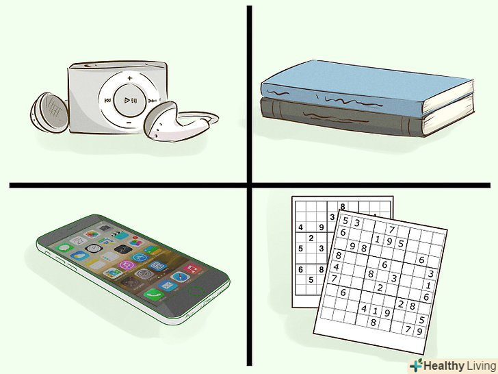 Візьміть з собою що-небудь, що займе вас в дорозі.якщо ви пасажир, ви навряд чи захочете дивитися у вікно всю дорогу. Важливо зайняти себе чимось, щоб не довелося розмовляти з іншими, особливо якщо для вас це утомливо.- Можна взяти з собою книгу, розмальовку, судоку і кросворди або електронний пристрій. Тримайте ці речі, а також речі, які Вас заспокоюють, під рукою.