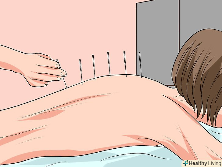 Подумайте про акупунктуру.акупунктура, або голковколювання, - це техніка, яка використовується в традиційній китайській медицині, при якій сертифікований практик стимулює точки на тілі за допомогою голок. Дослідження показали, що акупунктура допомагає знизити частоту виникнення мігрені. Вона також допомагає знизити інтенсивність головних болів.[23]- Поговоріть зі своїм лікарем або запишіться на прийом до сертифікованого голкотерапевта, щоб обговорити лікування мігрені.