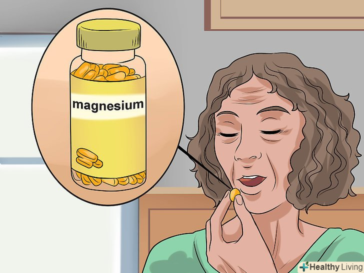 Приймайте добавки.прийом добавок може надати позитивний ефект на мігрень. Ці природні засоби пропонують альтернативні способи лікування мігрені. Завжди консультуйтеся з лікарем, перш ніж починати прийом будь-яких добавок або трав.- При мігрені може бути корисним прийом магнію, оскільки люди, які страждають від хронічних головних болів, часто відчувають дефіцит магнію.[24][25][26]