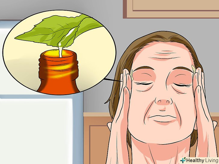 Використовуйте ефірні масла.Ароматерапія та ефірні олії можуть допомогти полегшити мігрень при менопаузі. Масло можна нюхати з пляшечки, капнути в розпилювач, аромасвечку або розтерти на шкірі. Можна також втирати масло в віскі, але будьте обережні, щоб воно не потрапило в очі.[32]- Від головного болю допоможуть позбутися масла лаванди, імбиру і перцевої м'яти. Спробуйте втерти їх у віскі або понюхати.