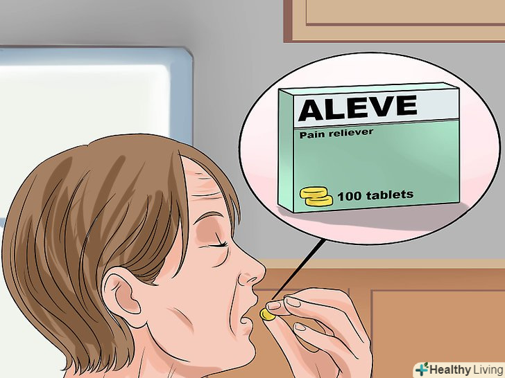 Приймайте болезаспокійливу.Один із способів лікування мігрені-прийом безрецептурних болезаспокійливих препаратів. Щоб їх придбати і приймати, не обов'язково відвідувати лікаря. Популярними варіантами є нестероїдні протизапальні препарати, такі як аспірин та ібупрофен.[37]- Надмірне використання цих ліків, наприклад щоденний їх прийом, може в кінцевому підсумку тільки погіршити ваші головні болі.