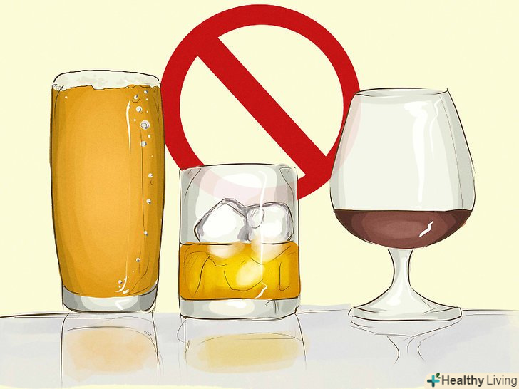 Утримуйтеся від їжі і напоїв, що провокують мігрень.доведено, що вживання деяких продуктів і напоїв може підвищувати частоту і інтенсивність нападів мігрені. Якщо ви страждаєте частими нападами мігрені, обмежте вживання подібних продуктів і напоїв або відмовтеся від них зовсім.[25]- Алкогольні напої, особливо пиво і червоне вино, посилюють мігрень.