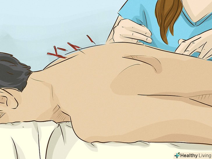 Спробуйте акупунктуру.згідно з деякими дослідженнями, акупунктура допомагає при лікуванні та запобіганні мігрені.[10] Акупунктура полягає у введенні дуже тонких голок в особливі точки на вашому тілі.[11] хоча акупунктура безпечна, необхідно, щоб її проводив кваліфікований фахівець. Ні в якому разі не намагайтеся займатися акупунктурою самостійно в домашніх умовах.