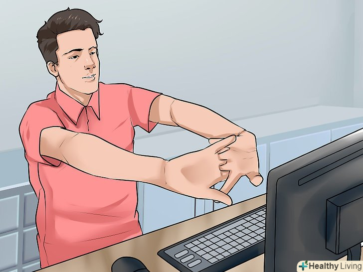 Регулярно робіть перерви.хоча і немає прямих доказів того, що синдром зап'ястного каналу обумовлений використанням клавіатури і мишки, робота за комп'ютером без сумнівів підсилює біль в зап'ясті при даному захворюванні. Зважаючи на це при роботі з клавіатурою і мишкою, а також іншими подібними пристроями необхідно робити часті перерви.[14]- Регулярні перерви можна поєднувати з іншими методами лікування.