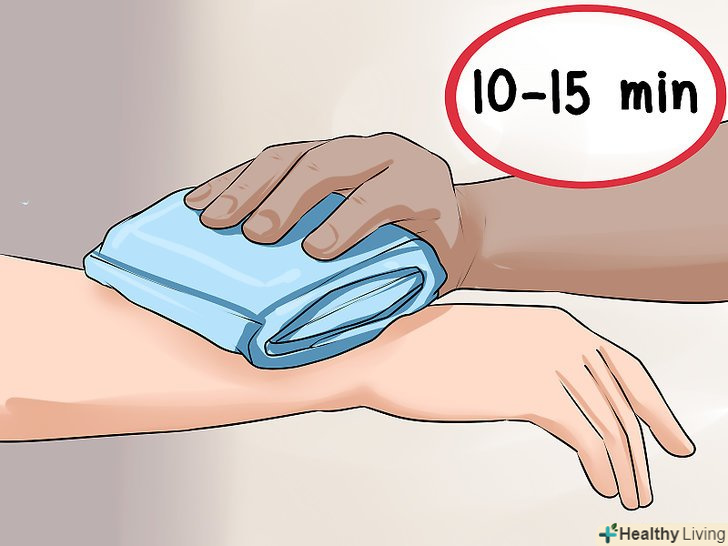 Прикладайте прохолодні або крижані компреси.як правило, холод допомагає зняти запалення. Прикладайте до зап'ястя прохолодний або крижаний компрес — це на час полегшить біль при синдромі зап'ястного каналу. Прикладайте холодні компреси на 10-15 хвилин. При цьому загортайте пакети з льодом в рушник, щоб вони не контактували зі шкірою.[16]- Ще один спосіб-постійно тримайте руки в теплі. Робота в прохолодному приміщенні нерідко підсилює біль і знижує рухливість зап'ястя. Подумайте про те, щоб при роботі за клавіатурою використовувати мітенки (рукавички без пальців).[17]
