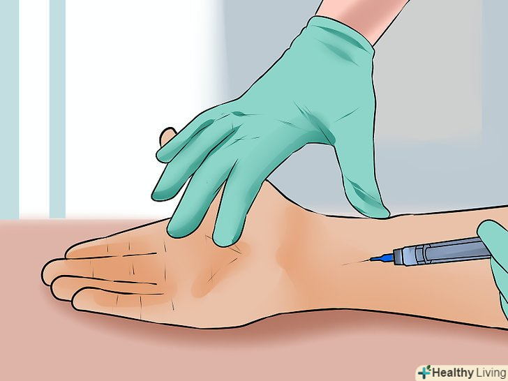 Дізнайтеся у лікаря щодо кортикостероїдів.лікар може зробити ін'єкцію кортикостероїдних препаратів прямо в зап'ясті. Кортикостероїди знімають запалення і набряк, що дозволяє зменшити тиск на серединний нерв і полегшити біль в зап'ясті.[23]- Хоча кортикостероїди і випускаються у вигляді таблеток для перорального прийому, при синдромі зап'ястного каналу більш ефективні ін'єкції.
