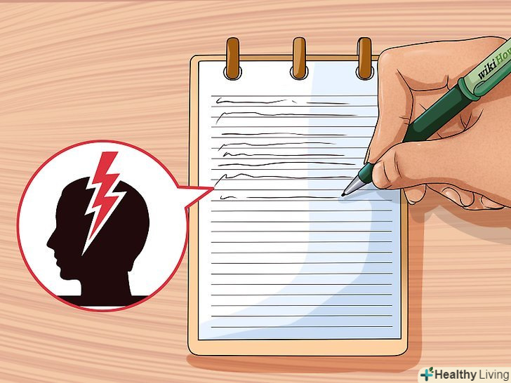 Ведіть щоденник головних болів.записуючи інформацію про випробовуваних головних болях, Ви зможете встановити певні закономірності. Ця інформація допоможе вам і Вашому лікарю виявити сприяють мігрені фактори і вжити заходів для їх нейтралізації.[19]- В щоденник слід заносити інформацію про те, коли почався напад, як довго він тривав, біль якого типу ви відчували, а також інші симптоми і лікування. Ця інформація допоможе вам і Вашому лікарю виявити тригери і визначити найбільш ефективні методи лікування.