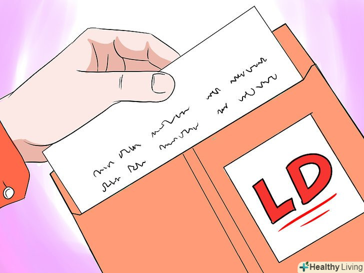 Запишіться на консультацію до фахівця, який займається діагностикою порушень здатності до навчання.найчастіше діагнози ставлять клінічні або неврологічні психологи.[16]- Коли лікар оцінить всі отримані дані, вам потрібно буде зустрітися з ним ще раз і обговорити результати.