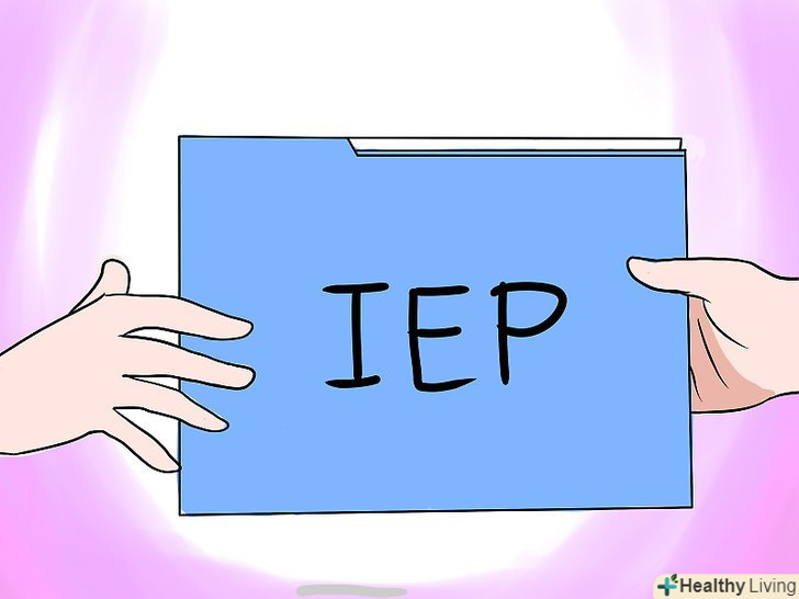 Отримайте індивідуальний навчальний план.коли консиліум оцінить стан дитини, вам видадуть індивідуальні рекомендації з навчання. У план навчання будуть включені ключові цілі, до яких вам потрібно буде прагнути, а також рекомендації щодо відвідування школи.[21]- Ви можете брати участь у розробці плану!