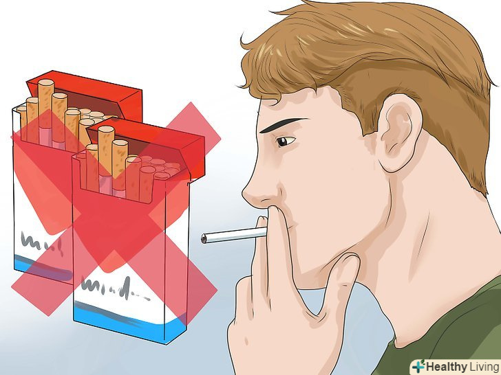 Киньте палити.тютюн-відомий фактор, що провокує виникнення мігрені. Якщо ви відчуваєте, що не можете кинути самостійно, поговоріть з лікарем про те, яка стратегія або які препарати вам допоможуть.[16]- Було проведено дослідження, яке доводить, що п'ять і більше сигарет, викурених за день, з більшою часткою ймовірності викличуть мігрень. Якщо ви не в змозі кинути палити, постарайтеся хоча б обмежити кількість сигарет і викурюйте не більше п'яти в день.[17]