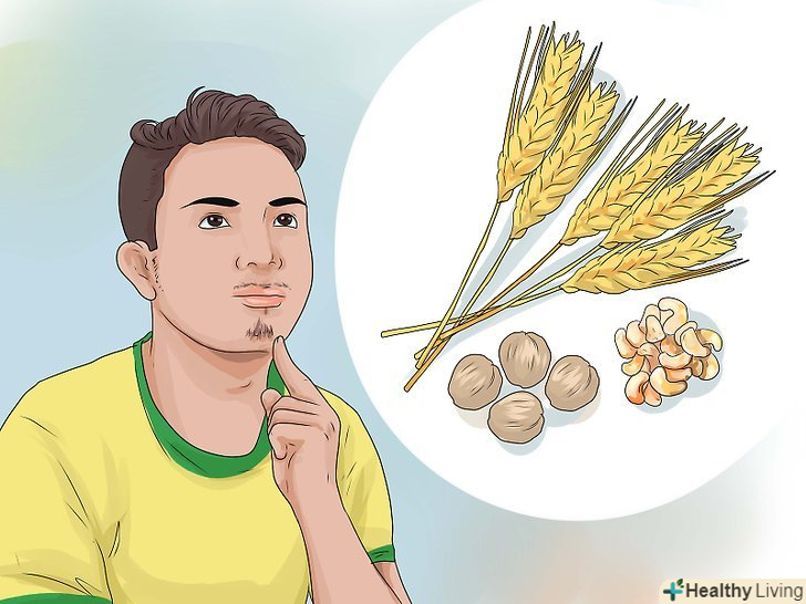 Враховуйте харчову алергію.алергія на певні продукти здатна спровокувати мігрень у схильних до неї людей. Причиною її є запалення, яким супроводжується алергічна реакція. Постарайтеся уникати їжі, на яку у вас точно або імовірно є алергія.- Якщо у вас стався напад мігрені, складіть список продуктів, які ви їли протягом дня. Так ви зможете відстежити зв'язок між своїм раціоном і мігренню і виявити можливі алергени. Ви можете також звернутися до лікаря і здати аналізи на алергію.