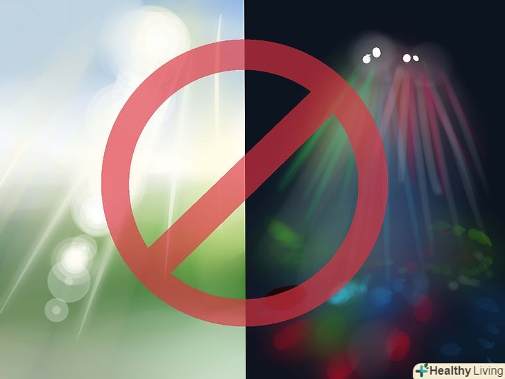Уникайте певних типів світла.коли ви намагаєтеся запобігти мігрені, Вам слід уникати яскравого світла. Певні кольори видимого спектра випромінювання можуть викликати мігрень у деяких людей. Така чутливість називається фотофобією. При ній світло активує сприймають його нейрони і підсилює головний біль.[6]- Коли це відбувається, для полегшення болю потрібно провести 20-30 хвилин в темряві, поки активність нейронів не спаде.[7]