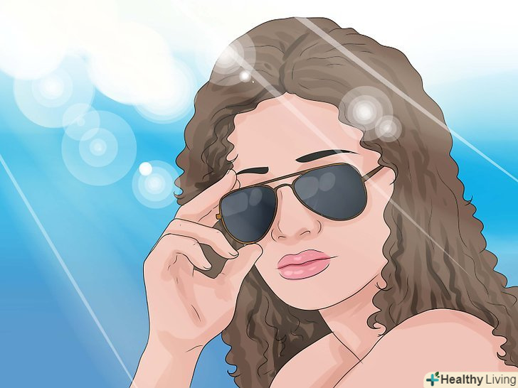 Обмежте вплив сильних подразників.оскільки яскраве або мерехтливе світло іноді викликає мігрень, в сонячні літні і навіть зимові дні потрібно носити сонцезахисні окуляри. Блиск снігу, води, відбиття світла від будівель можуть викликати реакцію у вигляді мігрені. Сонцезахисні окуляри повинні мати скла високої якості, бажана також захист з боків. Деяким людям, що страждають мігренню, допомагають окуляри з кольоровими стеклами.[8]- Періодично давайте очам відпочити, коли дивитеся телевізор або працюєте за комп'ютером. Налаштуйте комфортний рівень яскравості і контрастності комп'ютерного екрану і телевізора. Якщо екран відблискує, використовуйте фільтр, що послаблює відблиски, або закривайте фіранки або жалюзі при яскравому сонці.