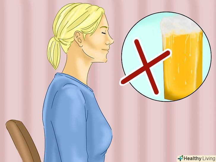 Утримуйтеся від спиртних напоїв.іноді виникає бажання скоротати час в барі аеропорту або випити пива на борту, щоб скрасити нудьгу під час польоту. Однак алкоголь може посилити головний біль після перельоту.- Алкоголь є одним з основних факторів, що провокують мігрень.[12] крім того, він сприяє зневодненню і тим самим посилює порушення добового ритму і головні болі.