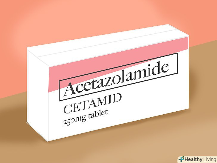 Приймайте ацетазоламід ("Диакарб").хоча цей препарат використовують в основному для лікування глаукоми, іноді він допомагає полегшити симптоми висотної хвороби. Якщо ви вважаєте, що головний біль викликаний зміною висоти, спробуйте прийняти цей препарат.[4]- "Диакарб" відпускається за рецептом. Розкажіть своєму лікарю про головні болі під час авіаперельотів і поцікавтеся, чи підходить вам даний препарат. "Диакарб" призначається в різних дозах і має різні інструкції по застосуванню, в залежності від мети його прийому та історії хвороби. Дотримуйтесь вказівок в рецепті і обов'язково порадьтеся з лікарем або фармацевтом, якщо у вас виникнуть будь-які питання.[5]