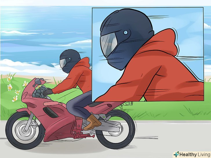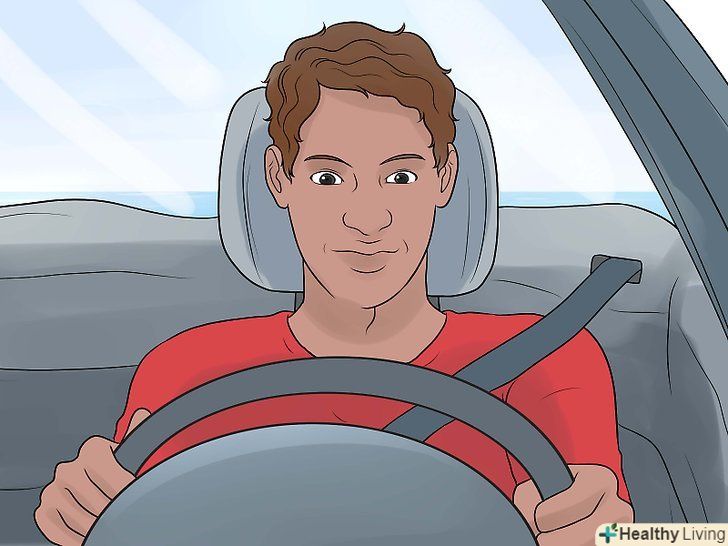 Водите акуратно.щоб запобігти травмам голови, ви також повинні уникати ДТП, дотримуючись правил дорожнього руху: водите автомобіль акуратно і не забувайте про ввічливість на дорозі. Не користуйтеся телефоном, коли ведете автомобіль, обов'язково пристібайте ремені безпеки і не забувайте про дитяче автокріслі, якщо у вас є дитина.[17]