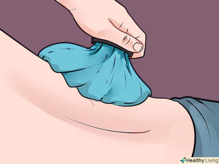 Прикладайте лід.після розтяжки прикладіть лід - це хороший спосіб зняти біль і набряк при синдромі грушоподібної м'язи. Візьміть пакет з льодом або з замороженими овочами і оберніть його тонким ганчірковим або паперовим рушником, після чого прикладіть до хворого місця. Потримайте пакет близько 20 хвилин, потім зніміть його. Зачекайте хоча б 2 години, перш ніж повторити процедуру.[5]