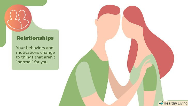 Подумайте про те, чи змінилися ваші звички в догляді за собою. Догляд за собою включає в себе гігієну і турботу про здоров'я. Оцінювати цей фактор також слід на підставі того, що ви вважаєте нормальним для себе. Наприклад, якщо ви зазвичай займаєтеся спортом 2-3 рази на тиждень, але не робили цього вже 3 місяці, це може бути ознакою того, що щось не так. Наступні дії є ознаками зниження інтересу до догляду за собою:[22]- Ви почали приймати стимулюючі речовини (алкоголь, наркотики) або стали робити це частіше;