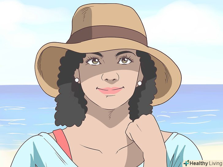 Не піддавайте шкіру впливу сонцяПри активній формі дерматиту.ви зможете зменшити прояв деяких симптомів, якщо будете захищати висип від шкідливих сонячних променів. Якщо вам потрібно вийти на сонце, то для захисту обличчя надіньте крислатий капелюх. Не використовуйте сонцезахисний крем на обличчі, оскільки він може посилити дерматит.[7]
